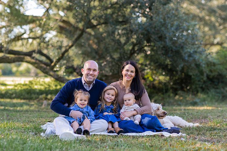 Dr. Bourgeois lives in Baton Rouge with her husband, a New Orleans native, who is also a physician. She is a mom to three amazing kids and her dog- daughters, Juliette and Annabel, son, Daniel, and Goldendoodle, Stella. Outside of the office, she enjoys travel, staying active, and spending time with her family.